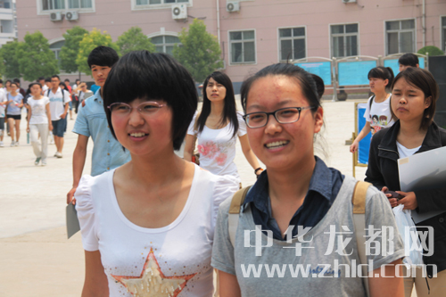 兩名考生結(jié)伴而出臉上露出輕松的笑容。