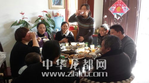 ????昨天中午,市民韓女士(站立者)趁假期看望老人,一家團聚。晚報記者 宋風 攝