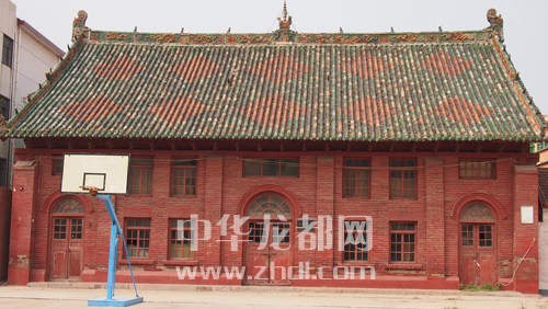 ????此廟位于扶溝縣城關鎮一中院內,始建于元代,歷經數次重修后,保留清代建筑風格,現大殿高約9米,面闊5間,進深3間,磚木結構, 1978年12月被公布為縣級文物保護單位,2006年3月被公布為市級文物保護單位。該城隍廟歷經明清兩代,兩次毀于兵患,重修十三次,三次廣其制。現存大殿上部全為綠色琉璃瓦,正脊的背面為連環花卉,且有“福”“壽”二字,下掛鐵鈴,斗拱。整座大殿,古樸典雅,美觀大方。