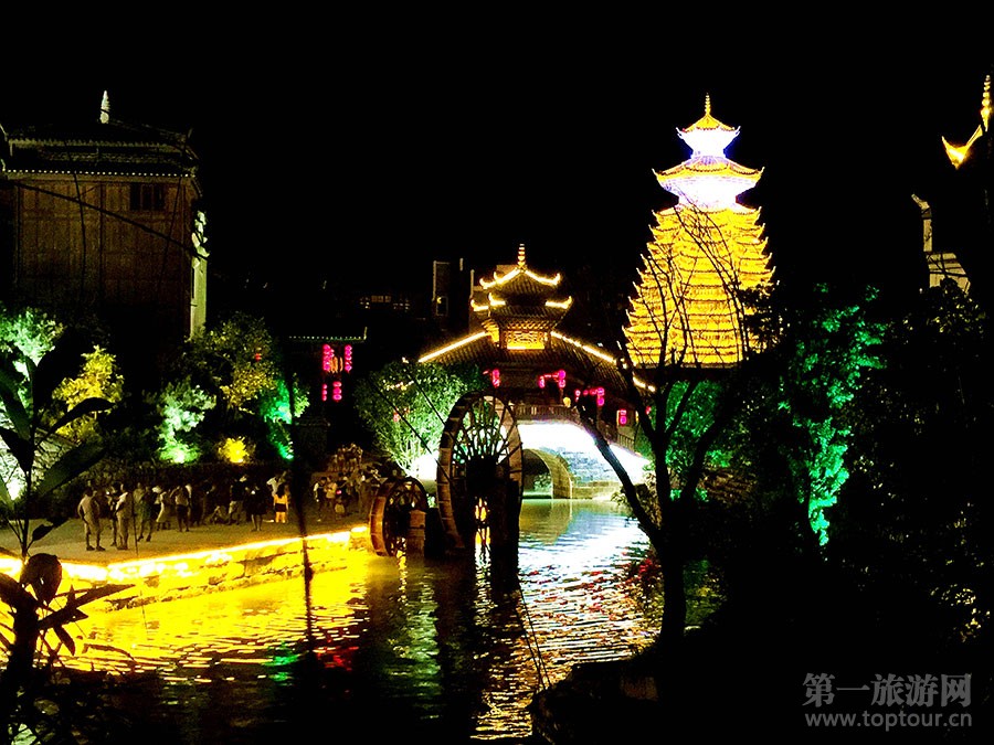 ????下司古鎮(zhèn)是貴州省黔東南自治州麻江縣與凱里市襟水相鄰的一個(gè)古鎮(zhèn)。嘉慶13年(公元1808年),下司被辟為商埠,到民國(guó)時(shí)發(fā)展為鬧市,有水陸碼頭,是黔東南重要物資集散地。當(dāng)時(shí)鎮(zhèn)上商賈云集,馬幫成群結(jié)隊(duì),商號(hào)、貨棧、會(huì)館、餐館遍布街巷,徹夜?fàn)I業(yè),被譽(yù)為“小上海”。現(xiàn)在兩岸大街還保留著清乾隆四十四年(公元1779年)修建的條石鋪砌成扇形的30余米的石級(jí)大碼頭和小碼頭,以及禹王宮,觀音閣等古寺,古殿宇遺址,古居民,古巷道。位于清江村觀音山半山腰上依山而建的觀音閣至今保存完好,香火鼎盛。這里有“清水江上的明珠”之美稱。這里山清水秀,人杰地靈,是中國(guó)紅蒜之鄉(xiāng),鋅硒米之鄉(xiāng),世界名犬下司犬之鄉(xiāng),世界優(yōu)秀、亞洲最好的皮劃艇激流回旋基地就在這里。每年農(nóng)歷七月中旬,這里的人們沿襲傳統(tǒng)舉行龍舟大賽,斗牛大賽,車流人流,摩肩接踵,熱鬧非凡。此外,這里還有眾多的歷史人文古跡,辟有桃園島、月亮島、紫薇島等系列旅游度假場(chǎng)所,堪稱下司絕藝的“酸湯魚”、“草燒狗”廚藝更是名聲遠(yuǎn)揚(yáng),深受游客喜愛。每當(dāng)周末假日,凱里、都勻、貴陽等處的旅客呼朋引伴舉家前來,漂流戲水、訪古探幽之后,悠悠然面水臨窗,點(diǎn)上一兩樣佳肴,大快朵頤,盡興享受這忙碌人生難得的清閑。入夜,這里更是燈火璀璨,流光溢彩,一派不夜城的景象。高翃凌/攝