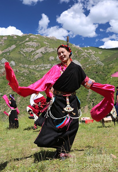 ????囊謙卓根瑪流傳于青海省玉樹藏族自治州囊謙縣,根據地理位置等可以分為囊謙南部林區卓根瑪和東部農區卓根瑪,其風格大同小異,南部林區卓根瑪分布在吉曲鄉、白扎鄉,東部農區卓根瑪分布在香達鎮、覺拉鄉。李鈺瑩/攝