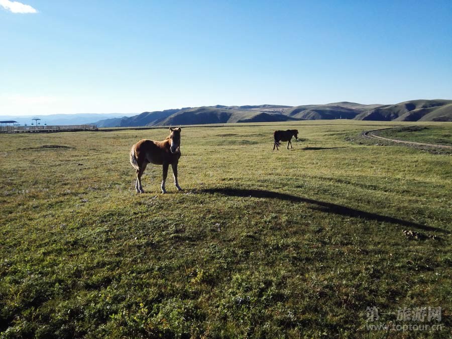 ????馬兒在蒙古包外不緊不慢地啃吃青草。