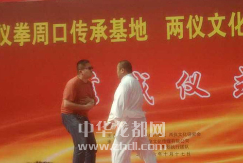 ????當(dāng)日,在兩儀拳周口傳承基地揭牌和兩儀文化周口發(fā)展中心落成儀式上,兩儀拳傳承人分別做了兩儀拳展示和兩儀養(yǎng)生功夫表演。隨后,段保華的弟子高躍鑫請現(xiàn)場觀眾上臺(tái)體驗(yàn)兩儀拳點(diǎn)穴。一位身材高大、體重近100公斤的彪形大漢應(yīng)聲上臺(tái)。彪形大漢與高躍鑫交流后,表示已準(zhǔn)備完畢。話音剛落,彪形大漢就被點(diǎn)中穴道,立即倒地。讓人驚奇的是,解穴后,彪形大漢隨即恢復(fù)正常。“以前聽說過兩儀拳的威力很大,沒想到會(huì)這么大。”彪形大漢說。