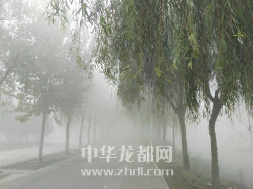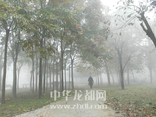 ????11月13日,周口市區被濃霧籠罩,建筑物和樹木在霧中若隱若現,恍如仙境。王銀行 攝