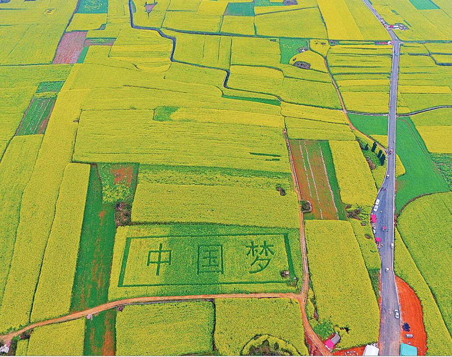 ????近年來,云南省羅平縣板橋鎮金雞村積極利用油菜花田,大力發展鄉村旅游,走上脫貧致富道路。圖為2月11日,當地村民在油菜花田中種出的“中國夢”字樣。毛虹/攝