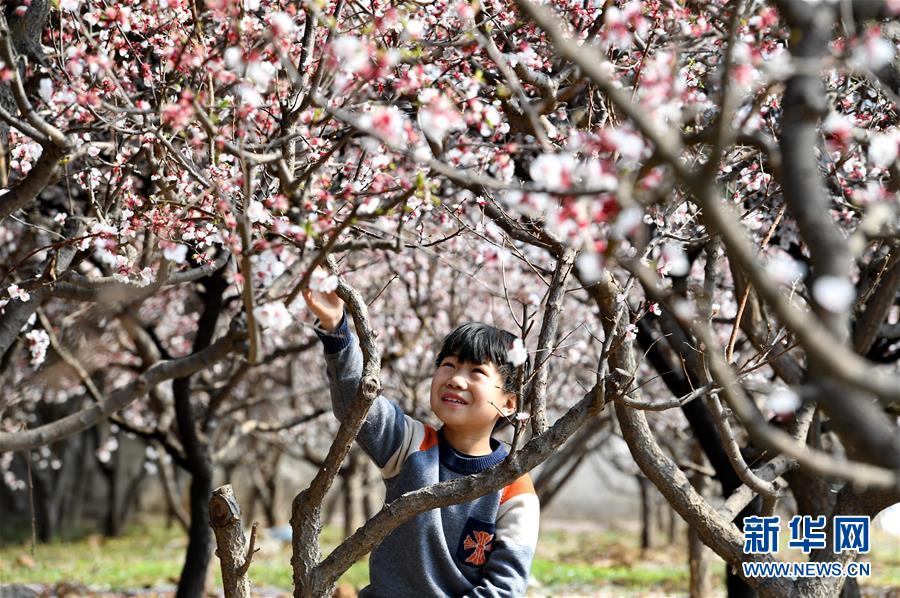 ????2月23日,一名兒童在河北省巨鹿縣巨鹿鎮(zhèn)東辛莊村的杏樹大棚內(nèi)玩耍。近日,河北省巨鹿縣巨鹿鎮(zhèn)東辛莊村溫室內(nèi)的杏花陸續(xù)開放,吸引游客前來觀賞。 新華社記者 牟宇 攝
