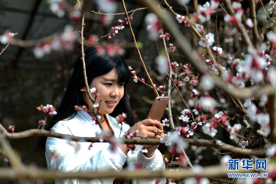 ????2月23日,游客在河北省巨鹿縣巨鹿鎮(zhèn)東辛莊村的溫室內(nèi)觀賞杏花。