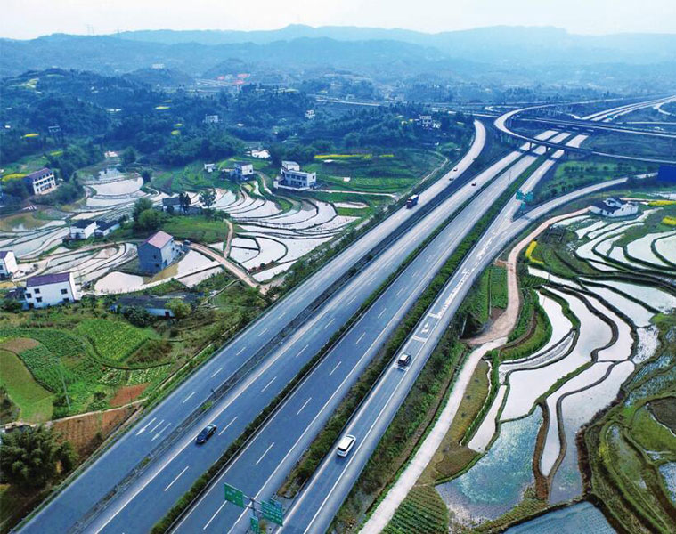 ????近年來,四川省瀘州市依托“兩縱兩橫兩聯”高速公路網,建成全國重要區域性綜合交通樞紐體系,聯通成都、重慶、宜賓、遵義、畢節、昭通等西南出海高速路網,暢通西南富民大通道,讓昔日關隘溝壑變通途。圖為2月27日,瀘州市納溪區白鶴林高速立交橋,與周邊鄉村田園錯落有致,形成春天的別樣畫卷。楊濤/攝