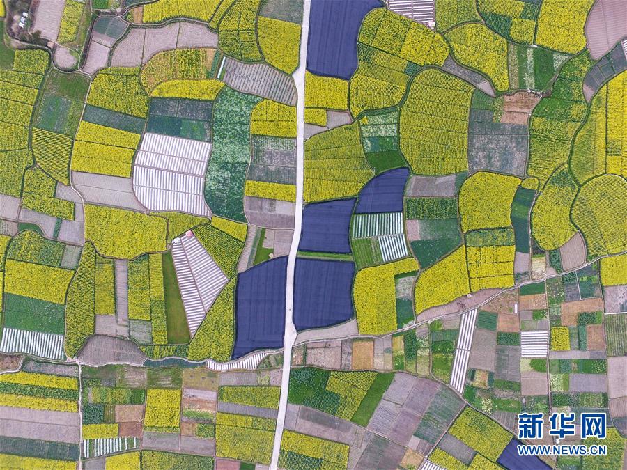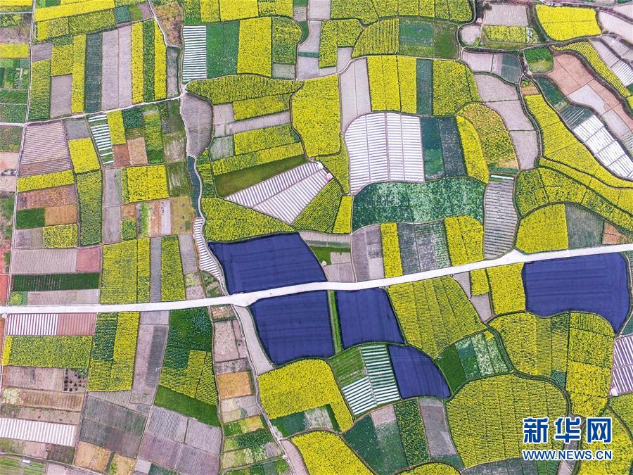 ????這是3月5日航拍的貴州省遵義市余慶縣白泥鎮滿溪村的農田。