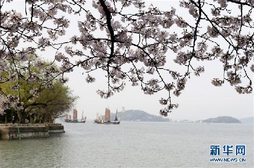 ????3月31日,江蘇無錫太湖黿頭渚景區(qū)櫻花盛開。近日,太湖櫻花爛漫正當(dāng)時(shí),吸引眾多游客前來賞櫻游玩。 新華社發(fā)(潘正光 攝)