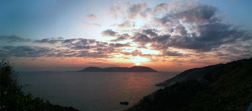 ????廟子湖島四周海水清澈,海洋生物資源豐富,是發展水產養殖的良好海域,廟子湖海域是舟山漁場的重要組成部分,是中街山漁場的中心所在。調查表明,有經濟魚類近200種、蝦類經濟種35種、蟹類經濟種近35種、海洋貝類經濟種25種、藻類經濟種30種。旅游資源有奇峰異石、觀海垂釣、捕魚嘗鮮、海灘拾貝等。廟子湖島的漁民畫以層次分明、海洋氣息和漁腥風味濃郁而著稱。山清水秀的廟子湖島吸引了大批文人墨客、丹青之士來島創作。廟子湖島相傳在清朝前期已有居民。清中期海寇蔡牽等擾海后,人跡不至。海寇平后,又有漁民上島從事漁業生產。相傳當時福建漁民最先來此島,見島上有一小廟,廟下有一水池。福建漁民稱廟為"廟子",稱水池為"湖",故名島為廟子湖。李鈺瑩/攝 東極晚霞