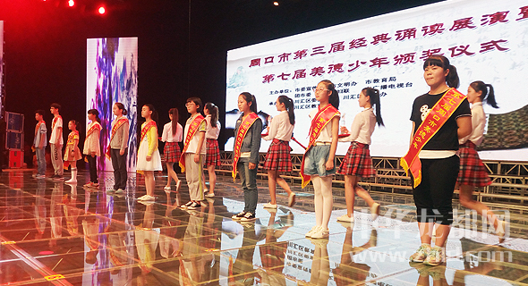 ????在孩子們表演開始前,此次被表彰的10名“周口市美德少年”身披綬帶,依次走上舞臺,接過象征著榮譽的紅色證書和獎杯,臉龐上洋溢著青春的笑容(如圖)。