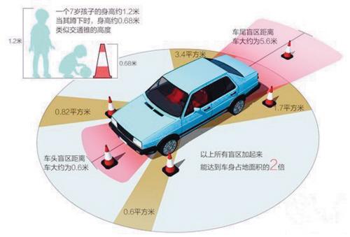 ????據交管部門有關人士介紹,車頭正前方盲區對于身高高于1米的兒童,司機一抬頭就能看到,但對于喜歡蹲在車子前邊的貪玩的孩子,或者個子矮的兒童,司機的車頭前方一段距離是沒有視野的,尤其是底盤高的車盲區更大。因此極易發生肇事。