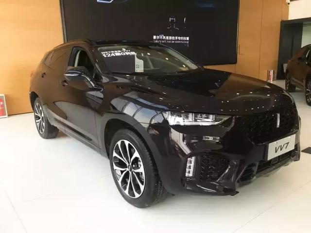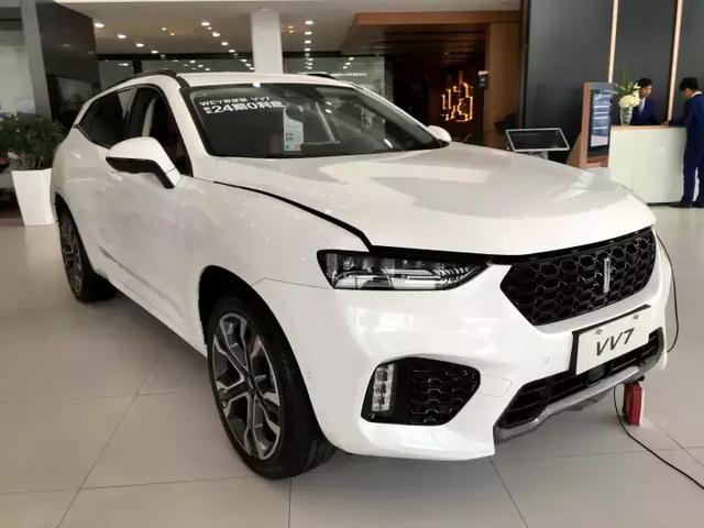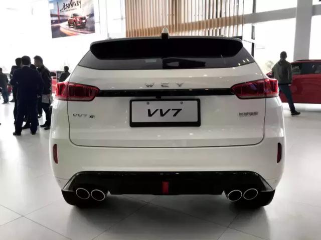 VV7車系下分VV7c和VV7s兩款車,VV7s細節設計上更為運動,配置更高一些,VV7c暫時不賣了,問銷售也不知道為何,展車也都是VV7s,白色是頂配,因為太火爆很難拍到周圍沒有人的時候。