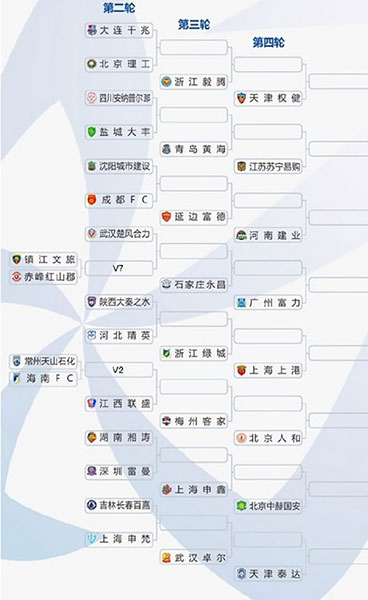第四輪開始16支中超球隊加入角逐,加上從第三輪晉級的16支球隊,共32支球隊參賽,中超球隊自動落位相應客場簽位,其中廣州恒大、上海申花、上海上港和天津權健4支亞冠球隊將分別落位在A、B、C、D區,這4支球隊在半決賽之前不會相遇。