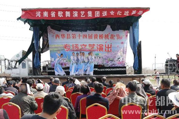 中華龍都網訊(周口報業全媒體記者 張猛)桃花朵朵競相開,歌聲陣陣花中來。3月26日上午,河南省歌舞演藝集團送文化進基層活動走進西華縣第十四屆桃花節。伴隨著悠揚的歌聲,本屆桃花節徐徐拉開帷幕。