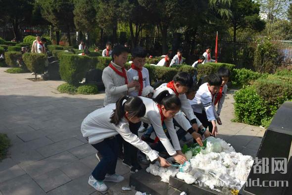 校長王新剛教育同學們要傳承革命先烈偉大的愛國主義精神和敢于擔當的責任意識,勤奮學習,努力成才。學生代表陳俞含同學發言慷慨激昂,代表全體學生表達了報效祖國的決心。全體少先隊員在墓碑前宣誓,“熱愛祖國、誠實勇敢、自律自強、奮發有為、振興中華。”少先隊員們的鏗鏘誓言響徹在烈士陵園上空。整個過程中,莊嚴肅穆。隨后,全體師生排著整齊的隊伍,繞墓碑一周,依次將白花擺放在烈士墓前,并深深鞠躬,表達對烈士的敬意與懷念。