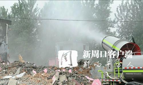 當日上午10時許,記者在拆除現場看到,5臺大型拆除機械齊上陣,噴水霧炮車在進行規范化濕法作業。拆除現場,安全員時刻警戒拆除安全工作,確保居民們生命財產安全。