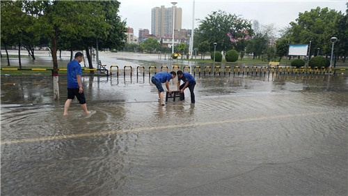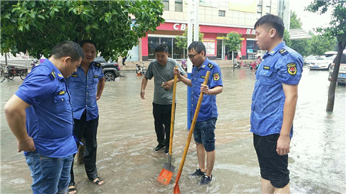 鄲城縣城管大隊負責人介紹,從早上6點開始,該大隊就對縣城區域內疑似積水路段進行了排查澄清底數,發揮本單位熟悉城市供排水布局的工作優勢,根據下水道窨井口所在路段進行分工,5人一組分別值守各路段。