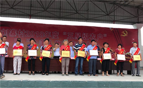 劉寨村黨支部書記閆繼昌首先宣讀了村黨支部、村委會、村新風協會《關于對2018年度“十類最美人物”和“星級農戶”進行表彰的決定》,與會領導和企業負責人向劉寨村50名最美黨員、最美青年、最美庭院、最美媳婦、最美家庭、最美婆婆、最美環衛、最美鄰里最美鄉賢、最美致富能手“十類最美人物”和5個“星級農戶”頒發了獎牌和禮品。其中“最美媳婦”兩份獎品,另一份獎品送到娘家,“一雙好媳婦,幸福三代人”。