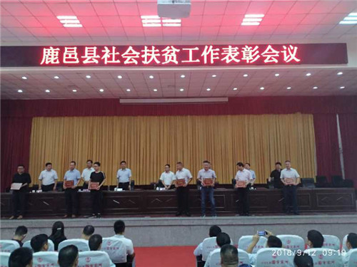 9月12日上午,鹿邑縣在縣委黨校報告廳召開全縣社會扶貧工作表彰大會,縣委常委、統戰部長閆家明,副縣長張勇出席會議。縣政協副主席丁顯輝主持會議。縣工商聯、扶貧辦、住建局、商務局等部門主要負責人與全縣200多家民營企業、醫院、學校以及社會團體相關負責人參加表彰會。