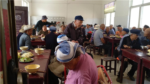 文藝節(jié)目之后,大家一同在敬老院食堂吃團(tuán)圓飯。老人們邊吃邊聊,臉上洋溢著開心幸福的笑容。