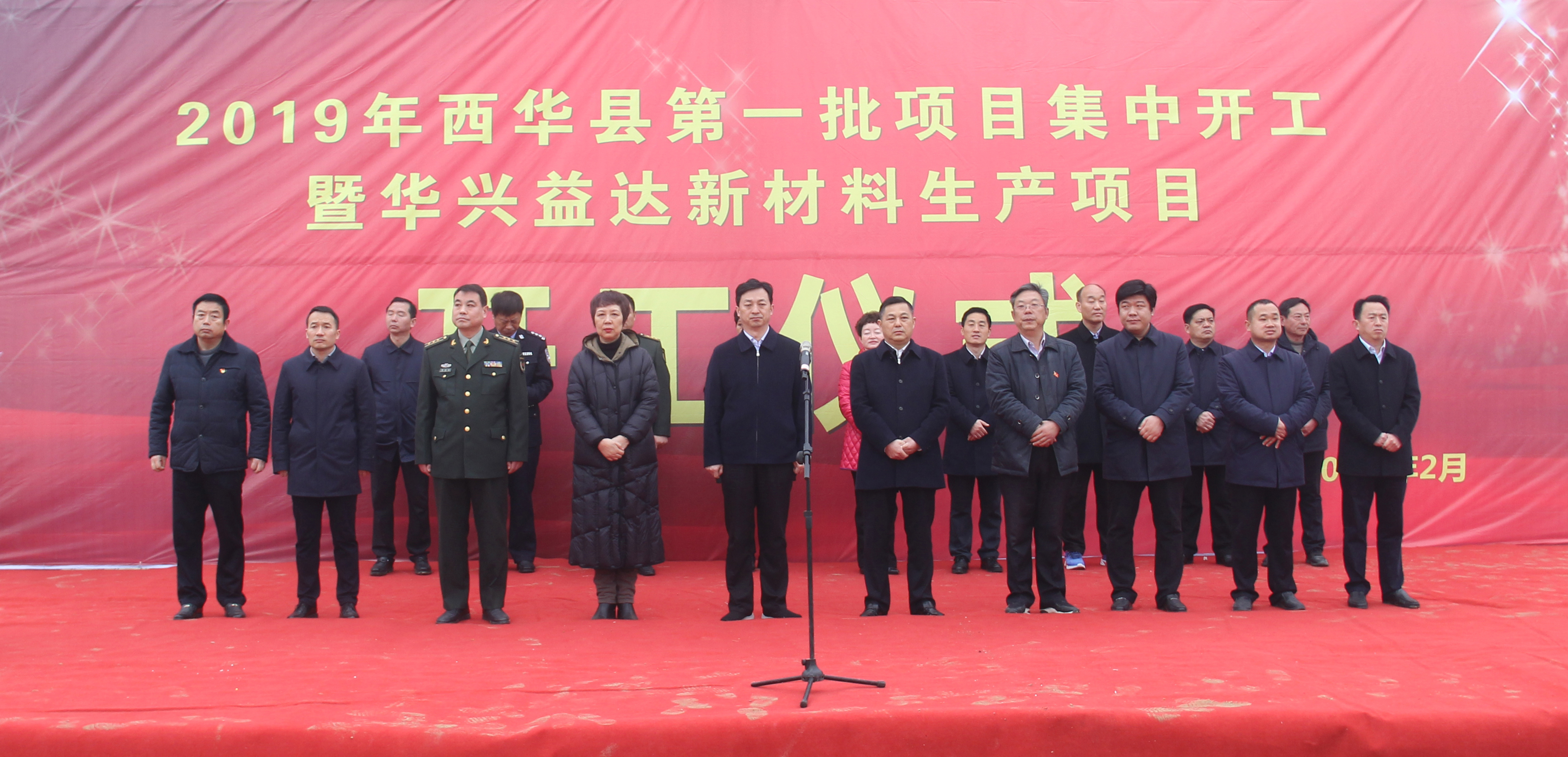2月26上午,西華縣2019年第一批項目集中開工儀式在華興益達新材料生產(chǎn)項目建設工地舉行??h領導林鴻嘉、田慶杰、周曉燕、郭峰、胡軍華、李濤、郝清俊、王獻超、張曉偉、楊鳳臣、王衛(wèi)東及其他縣處級領導干部出席開工儀式,各鄉(xiāng)鎮(zhèn)辦及縣直各部門主要負責同志,各項目施工單位代表參加開工儀式。