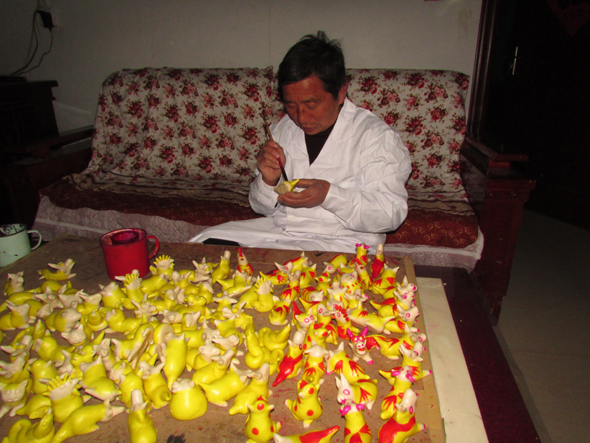 接到參加中國(淮陽)“非遺”展演的邀請后,顧家饃非遺傳承人陳志剛近日忙個不停,努力制作出精美的顧家饃,為宣傳“非遺”文化貢獻力量。圖為陳志剛在給動物造型的顧家饃著色。記者 田孝臣 通訊員 盧振 攝