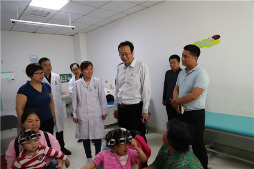 在縣人民醫院、周口永興醫院殘疾兒童康復機構,韓維俊看望慰問了正在機構康復治療的殘疾患兒。韓維俊每到一處都和患兒家長交流,仔細詢問患兒病情,鼓勵患兒親屬,為了孩子的未來要堅強,堅持康復治療,勉勵醫務人員要用真心、愛心、耐心對待工作,感謝他們對殘疾人事業做出的貢獻。