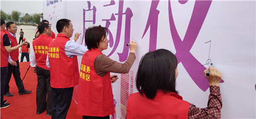 攜手共建衛(wèi)生城,齊心同育文明花。5月19日上午,周口市城鄉(xiāng)一體化示范區(qū)(以下簡稱示范區(qū))創(chuàng)建國家衛(wèi)生城市志愿者服務(wù)活動正式啟動。市創(chuàng)衛(wèi)辦副主任、市衛(wèi)健委主任金玉貞,共青團(tuán)周口市委書記王春華,示范區(qū)黨工委書記閆立超、管委會主任張建黨等全體班子成員出席儀式。全區(qū)3600名青年志愿者參加活動。