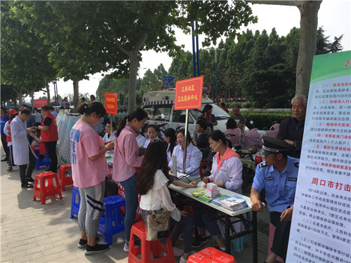儀式現(xiàn)場,示范區(qū)組織的大型義診活動同時舉行,現(xiàn)場工作人員發(fā)放了《創(chuàng)建國家衛(wèi)生城市致廣大市民的一封信》和《創(chuàng)衛(wèi)行業(yè)衛(wèi)生標(biāo)準(zhǔn)》。志愿者代表黃玉麟發(fā)言,全體志愿者舉起右手莊嚴(yán)宣誓。