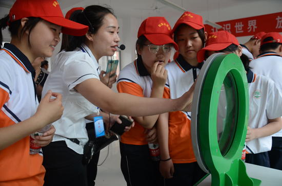 當日,記者在商水縣陽城中學巡展現場看到,科技館共分小球旅行、聲光電體驗、電磁探秘、運動旋律、數字魅力、科學表演、科學實驗等10個主題展區,互動展品66件,涉及電光力學、天文地理、生命科學、社會科學等科學門類。
