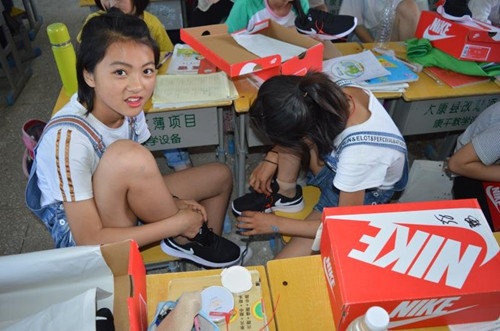 “這鞋子穿在腳上輕便舒適,還是耐克名牌,我長這么大還沒有穿過這么好的運動鞋呢,有了它,我今后上體育課就更加方便了。非常感謝黃叔叔的愛心捐助。”5月27日下午,太康縣馬頭鎮薛廟小學六年級學生王雨蒙穿上愛心人士黃宗昆捐贈的運動鞋后激動地說。
