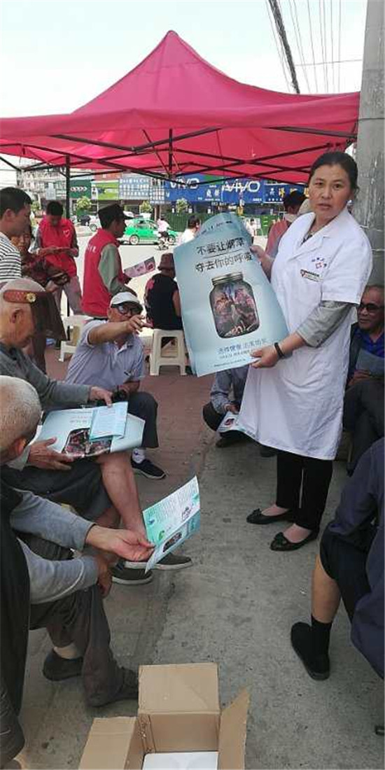 該縣疾控中心組織8名工作人員,在支農路北段以懸掛宣傳主題橫幅、擺放宣傳展板、設立義診咨詢臺、發放宣傳資料等形式,向過往市民宣傳吸煙可導致肺部損傷和增加高血壓風險等危害,以及戒煙的方法等知識,引導大家遠離煙草,養成健康、文明的生活方式。