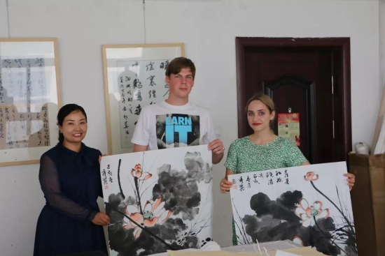 鹿邑本土畫家劉龍飛畫的花鳥栩栩如生引起俄羅斯青年畫家們的嘖嘖稱嘆。兩位青年畫家通過翻譯告訴記者,中國畫歷史悠久、博大精深,看到兩位老師的畫作形神兼備,氣韻生動,真是不虛此行,感謝贈送的佳作,他們一定珍藏。據悉,本次活動他們將以國際藝術志愿者的身份、以西方人的視角描繪老子故里的美景,他們走進明道宮、太清宮等景點實地寫生,并走美術學校為孩子們輔導繪畫并帶來世界名校的繪畫理念。