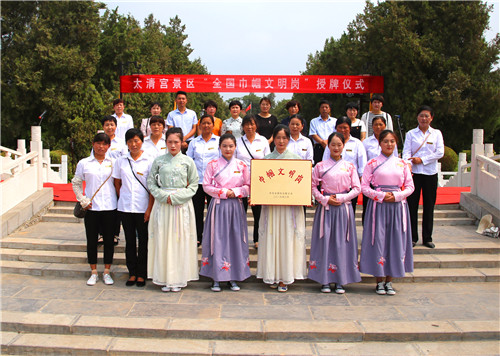 太清宮景區經理馬登領在儀式上做表態發言,表示將以這次授牌儀式為契機,再接再厲,將“巾幗建功”活動常態化、長效化,保住“全國巾幗文明崗”這塊招牌,擦亮“全國巾幗文明崗”這塊招牌,讓全國“巾幗文明崗”這塊招牌在太清宮景區青春常駐,熠熠生輝。