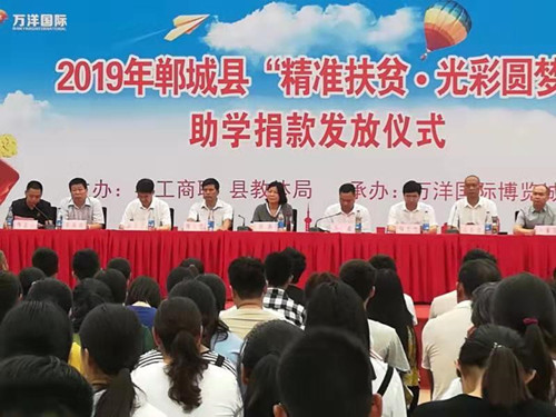 本次“精準扶貧·光彩圓夢”由縣萬洋集團慷慨解囊、傾情相助,共捐資20萬元,對100名品學兼優的貧困學子給予資助,為鄲城的教育事業增光添彩。