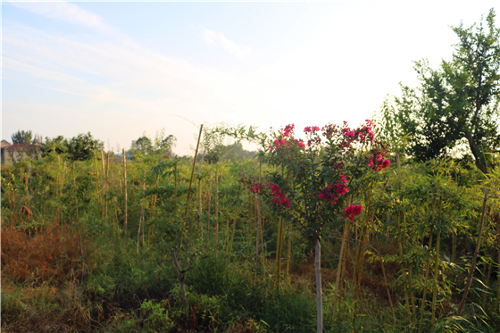 米杰是第一個嘗試吃螃蟹的田園綜合體追夢人,這個在外打拼多年事業有成的豫東漢子,放棄了原本舒適的城市生活,于去年初回到老家大米行政村,通過流轉連片成方土地,栽植紫薇、紅梅、丁香、臘梅、石楠、海棠、櫻花、碧桃、無花果、蘋果、藍莓、石榴、冬棗等各類喬木果樹,并配套完成地下供排水管網和線纜埋設等現代化農田設施,和鎮里已經形成的萬畝中藥材基地連成一片,形成規模效應。朝著他心目中的“一田花、一片林、一灣水、一首詩、一幅畫”——惠濟灣田園旅游新高地闊步前行。