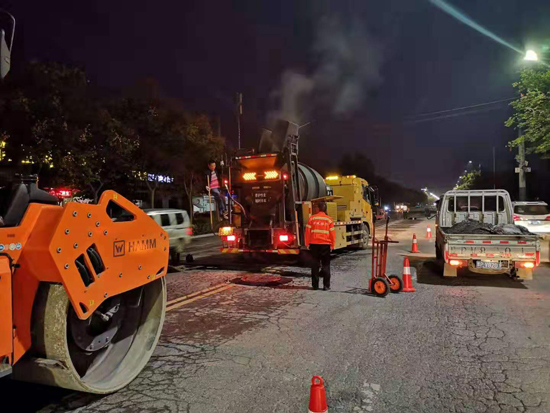 9月20日晚,記者在八一大道北段看到,道路綜合養護車、壓路機、運輸車、圓周切割機等車輛和設備早已到位,市政工人正在施工(如圖)。從切割路面到恢復通車,一段路不到兩個小時就完成了任務。從外觀看,新更換的窨井蓋與以前的并無明顯差別。