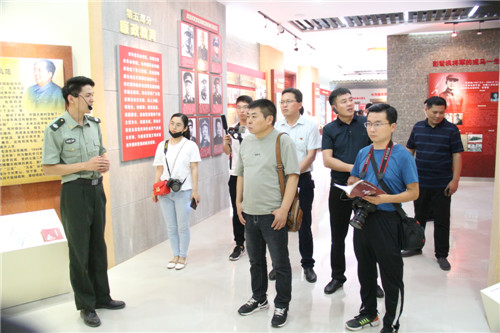看展覽、聽講解、看影像,采訪團記者仔細瀏覽紀念館內陳列的一張張珍貴照片、一份份批示文件、一件件戰斗裝備,不時地記錄、拍照。
