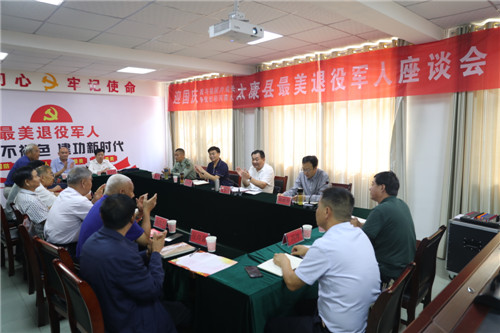 9月27日上午,在“十一”國慶節到來臨之際,太康縣委書記王國璽組織召開了“迎國慶、我與祖國共成長、爭做出彩河南人”太康縣最美退役軍人座談會??h委副書記、政法委書記劉海艇,縣委常委、副縣長韓維俊,縣武裝部政委郭立君,縣人大常委會原主任盧長慶、縣政協原主席許賢信,縣人大常委會原副主任劉世范、王清賢、周心亮、張松石、任尚富等縣處級退役軍人老干部及縣退役軍人事務局班子成員、太康縣首屆“最美退役軍人”參加座談會。