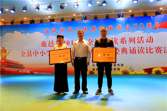 9月27日,由中共鹿邑縣委宣傳部主辦、鹿邑縣教育體育局承辦的慶祝中華人民共和國成立70周年、鹿邑縣2019年全民閱讀系列活動——全縣中小學生“歡樂進萬家”經典誦讀比賽(決賽)在弘德中學報告廳舉行,在初賽中嶄露頭角的十六個單位的近800名師生參加了決賽。