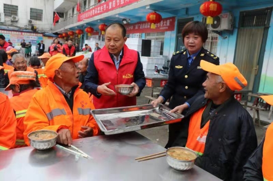 當日凌晨5時許,太康縣愛心早餐點人頭攢動,熱鬧非凡,一輛裝滿新鮮蔬菜的大貨車停放在院中,20多名城管志愿者在太康縣城管局局長張愛梅的帶領下正從車上往下卸蔬菜。聽說愛心企業要為環衛工捐贈蔬菜,太康縣委常委、統戰部長張新棟也放棄節日休息,天不明趕到太康愛心早餐點,加入到蔬菜裝卸行列。“節日里,縣領導也不忘過來看望我們環衛工,真讓人感動啊。”看著張新棟、張愛梅等人忙前忙后卸蔬菜,臉上浸滿了汗珠,環衛工張大爺等人動情地說,“社會上有這么多好人關心我們環衛工,我們再苦再累也值了!”