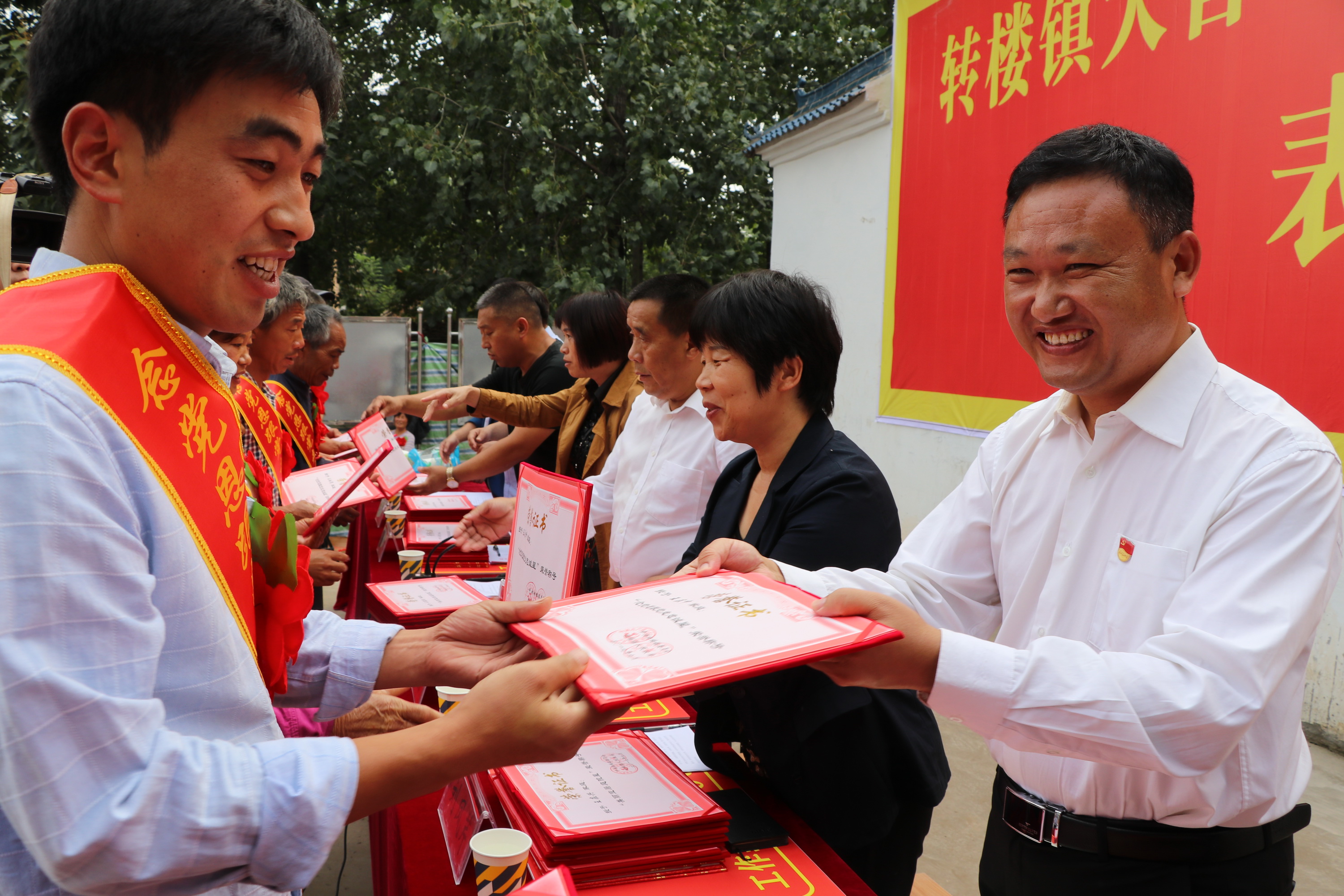 10月2日,榮獲“產業富民致富星”等“十星”農戶高興地領獎。為慶祝新中國70華誕,國慶期間,太康縣轉樓鎮除在全鎮范圍內舉辦“十星”農戶評選外,還通過在街頭精心布置花壇、懸掛國旗,組織黨員干部參觀革命紀念館等,緬懷革命先烈,傳承紅色基因。