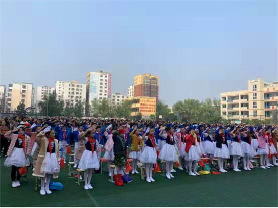 本次主題隊會以“紅領巾心向黨、爭做新時代好少年”為主題。整個隊會規范展示了出旗、唱隊歌、呼號、退旗等標準程序,少先隊員們隊歌嘹亮、小旗手們腳步鏗鏘,充分展示了新時代太康縣少先隊員積極向上的精神風貌。在入隊儀式上,老隊員們一起為新隊員佩戴紅領巾,新老隊員高高舉起右手,莊嚴宣誓。《我和我的祖國》、《紅領巾心向黨》、《紅領巾之歌》、《在燦爛的旗幟下》等精彩節目,用清晰的肢體語言、美妙的歌聲贊美偉大的祖國、偉大的中國共產黨,展示了太康縣少先隊70年來與祖國共同成長的畫面,激勵少先隊員們聽黨話、永遠跟黨走,在星星火炬的指引下,傳承紅色基因,爭做新時代好隊員。