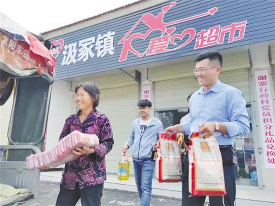 近日,記者在鄲城縣汲冢鎮謝寨行政村“愛心超市”看到,64歲的孫雪梅用鎮黨委、鎮政府給予的積分卡換取不少生活用品。為讓全鎮187戶兜底特困戶選到稱心如意的物資,汲冢鎮黨委、鎮政府匯聚全社會的愛心,備足米、面、油、棉衣、棉被等物資,將濃濃的黨恩通過“愛心超市”傳向千家萬戶。
