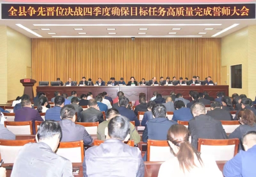 乘著周口市2019年第三季度項(xiàng)目觀摩的東風(fēng),扶溝吹響了決戰(zhàn)第四季度、奮力推動(dòng)經(jīng)濟(jì)社會(huì)高質(zhì)量發(fā)展的“沖鋒號(hào)”。10月21日,扶溝縣召開爭(zhēng)先晉位決戰(zhàn)四季度確保全縣目標(biāo)任務(wù)高質(zhì)量完成誓師大會(huì),深入貫徹習(xí)近平總書記在河南考察調(diào)研指示精神,動(dòng)員全縣上下進(jìn)一步認(rèn)清形勢(shì),堅(jiān)定信心,鼓足干勁,加大力度,大干苦干,決戰(zhàn)決勝,全力以赴做好第四季度工作,確保全年目標(biāo)任務(wù)高質(zhì)量完成。張穎波、詹凱、姜永來、張建中等縣四個(gè)班子領(lǐng)導(dǎo)出席會(huì)議。縣委副書記、政法委書記詹凱主持會(huì)議。
