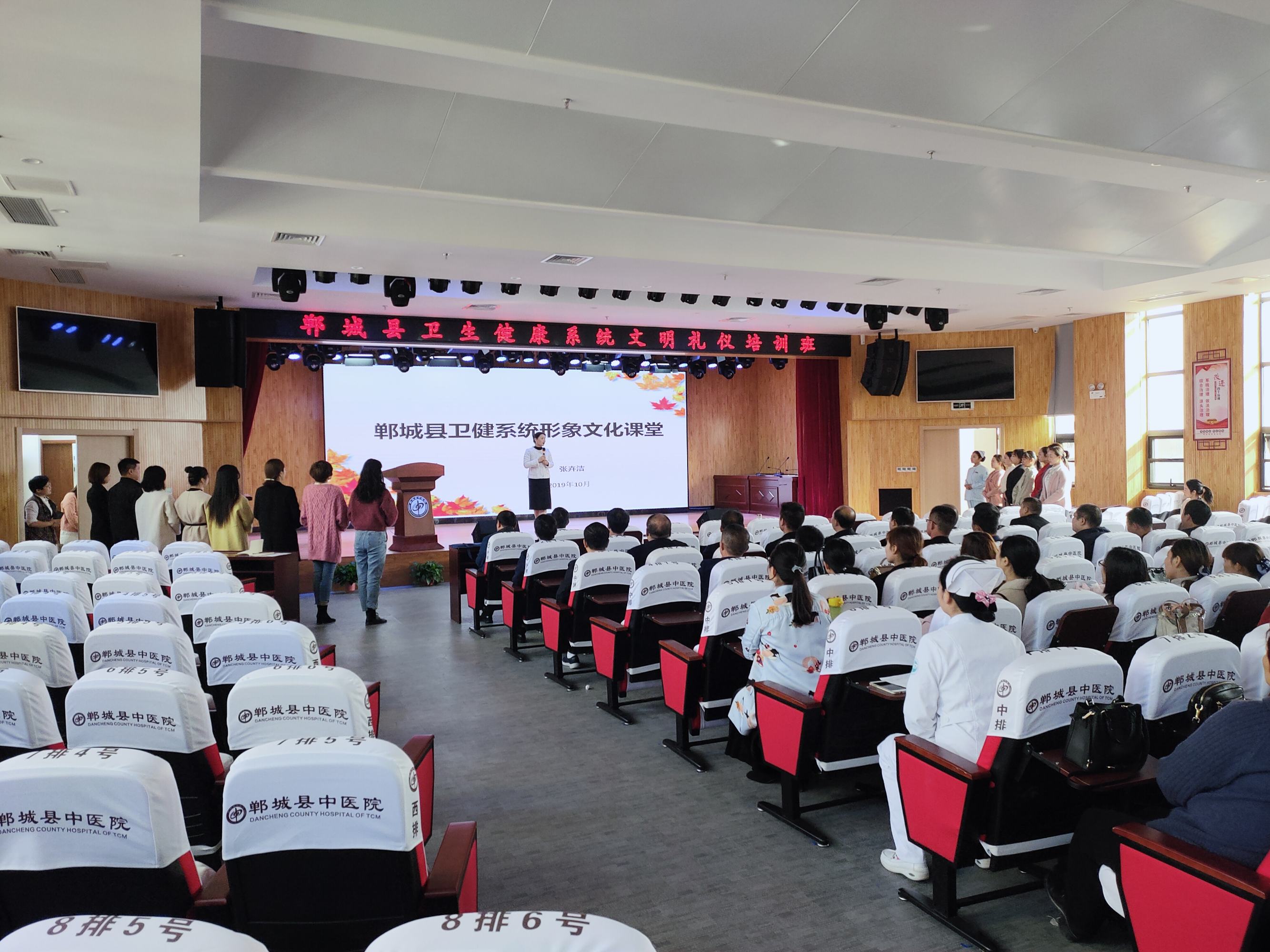 為一步提升全縣衛(wèi)健系統(tǒng)醫(yī)護(hù)人員綜合素質(zhì),打造鄲城衛(wèi)健系統(tǒng)形象新名片,10月28日,鄲城縣衛(wèi)健委在縣中醫(yī)院學(xué)術(shù)報告廳舉辦衛(wèi)健系統(tǒng)文明禮儀培訓(xùn)班。四家醫(yī)療健康服務(wù)集團分管醫(yī)改、健康促進(jìn)、健康扶貧副院長、護(hù)理部主任、護(hù)士長,各鄉(xiāng)鎮(zhèn)衛(wèi)生院院長、護(hù)士長和各單位選拔的講解員共計120多人參加了培訓(xùn)活動。