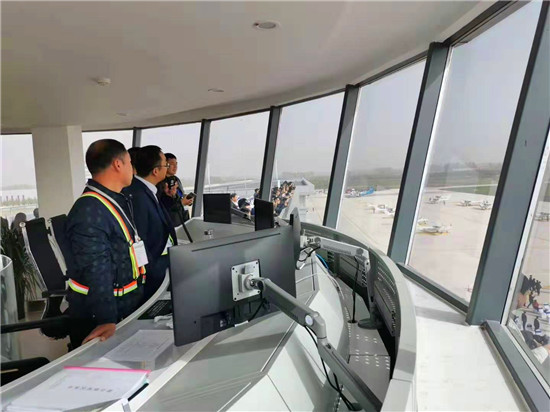 10月29日上午,周口西華通用機(jī)場正式啟用。在機(jī)場工作人員的帶領(lǐng)下,記者來到機(jī)場運(yùn)行中心塔臺。塔臺可以環(huán)視機(jī)場全貌。機(jī)場運(yùn)行中心是機(jī)場指揮運(yùn)行的中樞,對空指揮系統(tǒng)、氣象自動觀測系統(tǒng)、ADS-B監(jiān)視系統(tǒng)和機(jī)場全景監(jiān)控系統(tǒng)均在運(yùn)行中心塔臺內(nèi)。