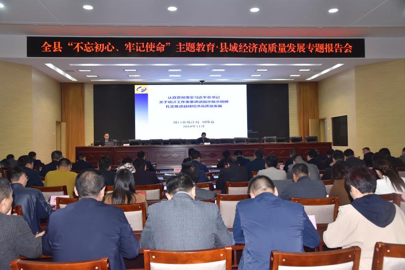 11月14日,扶溝縣召開“不忘初心、牢記使命”主題教育·縣域經濟高質量發展專題報告會,特邀市統計局黨組成員、總統計師劉鋒磊作專題輔導。張穎波、姜永來、張建中、段然、王霄靈、趙紅亮、閆忠玉、尚守永、曹來凌等縣領導聆聽報告??h委常委、常委副縣長王霄靈主持會議。